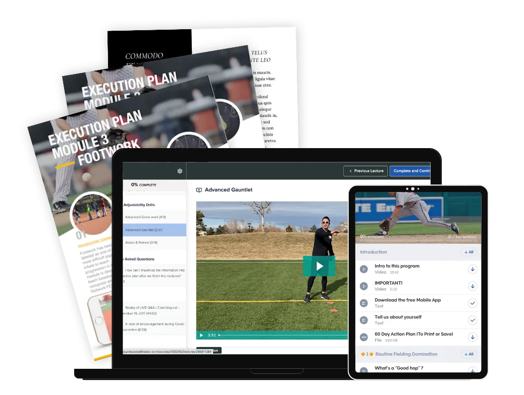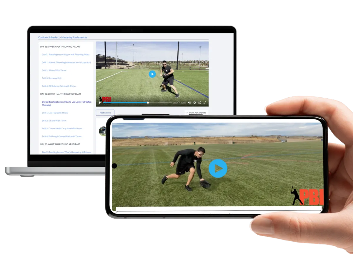 "Bite-sized", progressive learning - "Most people over estimate what they can do in a day, but under-estimate what they can do in a month." This newly-filmed program (version 3.0) has taken the feedback from hundreds of infielders, parents, and coaches and is specifically designed to fit into YOUR busy life. Each day includes one short learning video (Average watch time is 5 Minutes) + 3 to 4 practice drills. You will shocked at how fast this steady rate of progress leads to massive improvement.