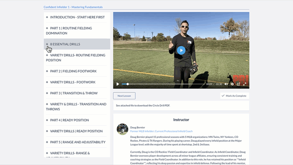 NEW - This setup is new! Based on feedback from hundreds of students, the newly filmed Confident Infielder (3.0) no longer has long lectures. Rather, there is a single focus for each day..